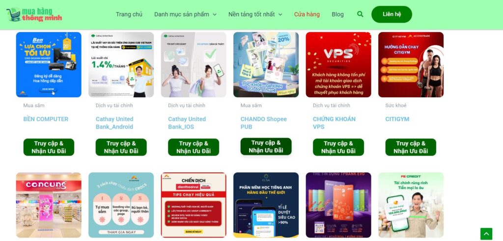 Khám phá hệ thống cửa hàng liên kết tập hợp hơn 80+ nền tảng mua sắm, tài chính, giáo dục, du lịch và dịch vụ uy tín. Tất cả được gom nhóm rõ ràng, giúp bạn tra cứu và mua sắm nhanh chóng, tiện lợi chỉ trong một website.